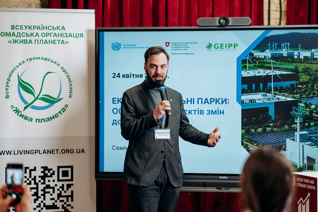 У межах заходу провідний юрисконсульт ВГО «Жива планета» Інна Яреськовська презентувала результати аналізу впливу національного законодавства на розвиток ЕІП: «Розвиток екоіндустріальних парків тісно пов'язаний із ключовими стратегічними документами держави: план Ukraine Facility, Стратегія розвитку індустріальних парків на період 2023-2030 років, Національний план з енергетики та клімату до 2030 року, Стратегія відновлення, сталого розвитку та цифрової трансформації малого і середнього підприємництва на період до 2027 року, а також Стратегія розвитку циркулярної економіки України до 2035 року яка знаходиться на фінальному етапі розроблення... ».